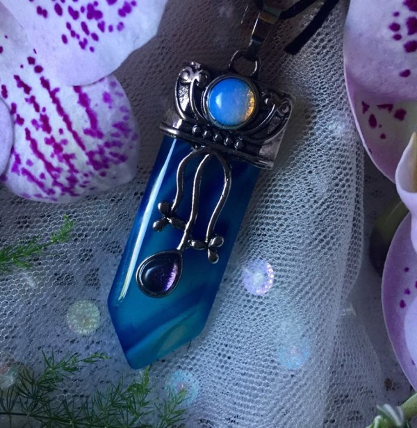 Ese talismán está elaborado con una piedra maravillosa, el ágata azul, uno de los minerales asociados a la diosa que cuida de que nunca nos falte lo necesario.